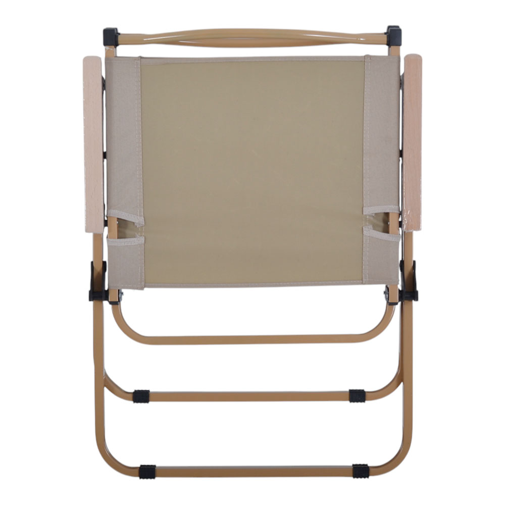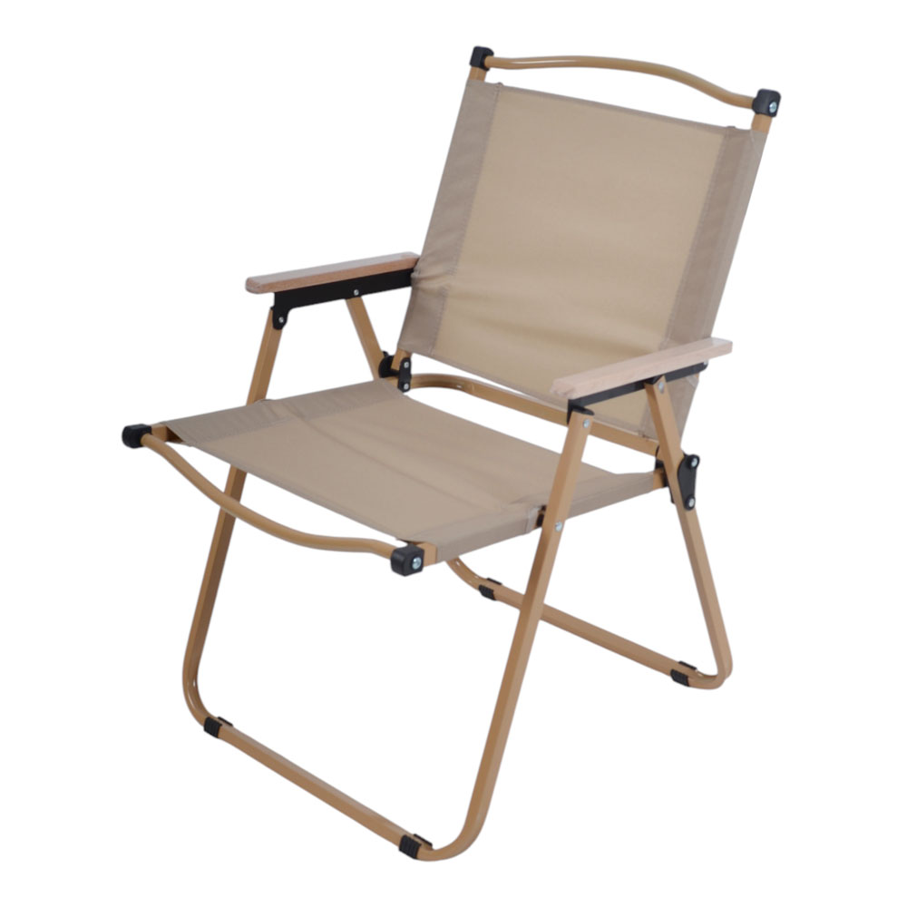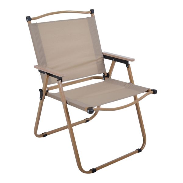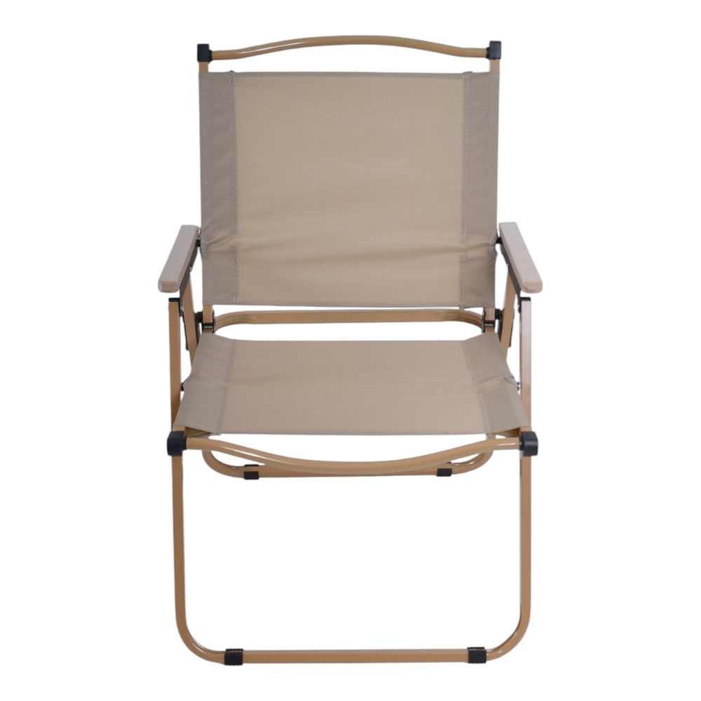 Πτυσσόμενη καρέκλα με μεταλλικό σκελετό σε μπεζ χρώμα, ιδανική για κάμπινγκ, παραλία ή υπαίθριες δραστηριότητες. Ο ανθεκτικός σκελετός από σωλήνα διαμέτρου 13x13mm και πάχους 1.0mm προσφέρει σταθερότητα και αντοχή, ενώ το πολυεστρερικό ύφασμα Oxford 600D εξασφαλίζει ανθεκτικότητα και άνετο κάθισμα. Διαθέτει πρακτικά μπράτσα με ξύλινη επιφάνεια που προσφέρουν επιπλέον άνεση και κομψή εμφάνιση. Η πτυσσόμενη κατασκευή της επιτρέπει εύκολη μεταφορά και αποθήκευση.