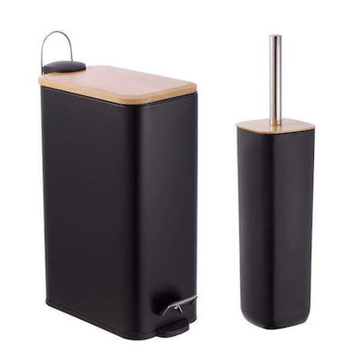 Μεταλλικό σετ μπάνιου με καπάκι από μπαμπού.
